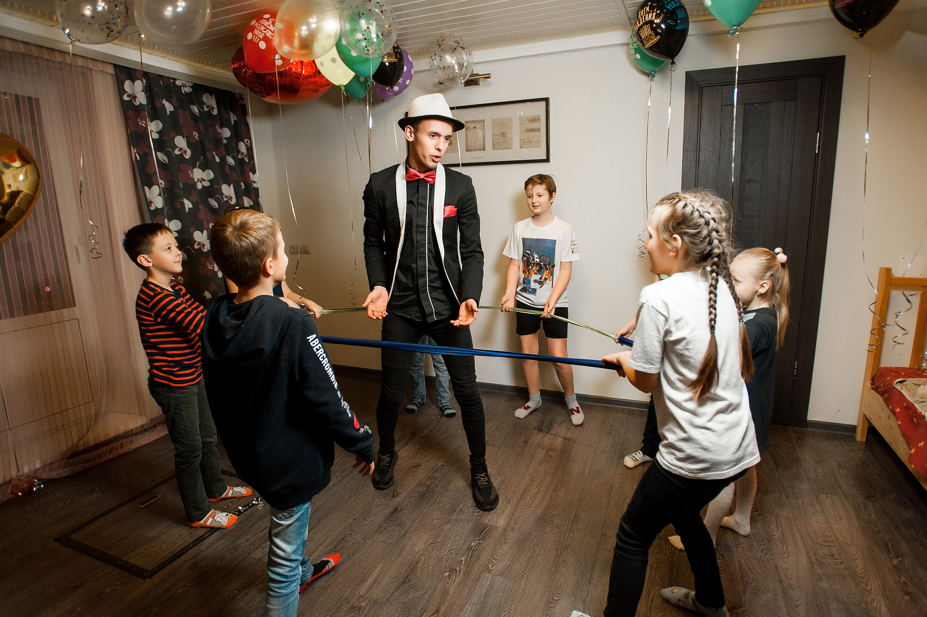 Не беспокойтесь о площади помещения, ведь профессиональный аниматор способен организовать увлекательный праздник даже в небольшом пространстве. Мы располагаем обширным арсеналом игр и развлечений, подходящих для помещений любого размера.
